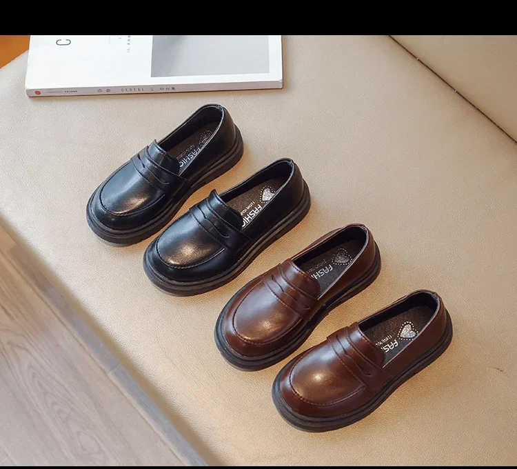 Britain Style Children's Leather Shoes for Boys 2025 Spring New Girls