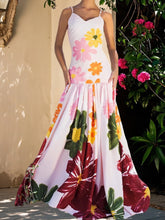 Women s Boho Floral Print Spaghetti Strap Maxi Dress Sleeveless Flowy Hem Summer Beach Cami Dress with Pockets