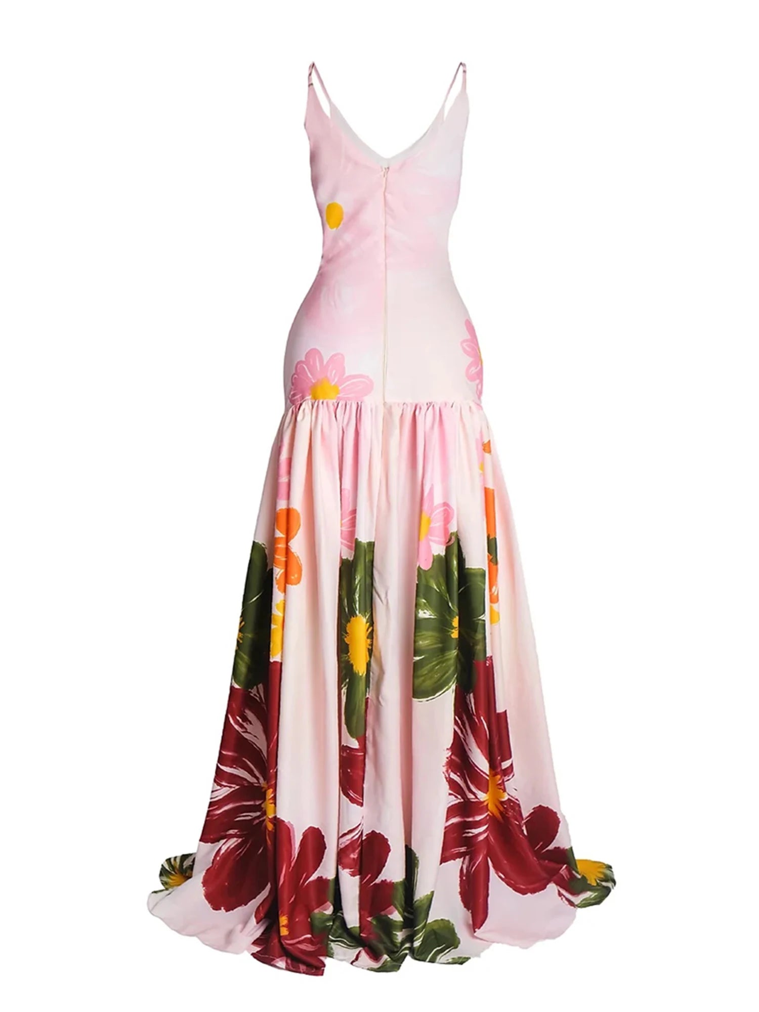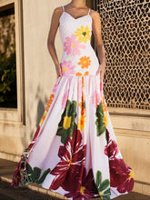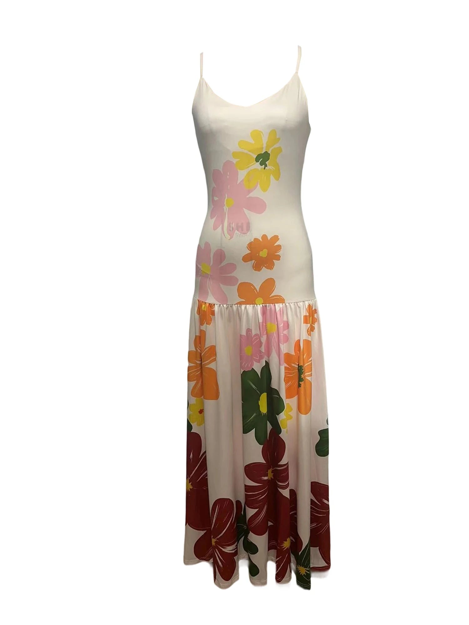 Women's Summer Long Cami Dress Sleeveless Flower Print Flowy Hem Spaghetti Strap DressSize (cm)