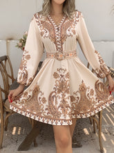 Boho Women's Dress - Vintage V-Neck Ruffled Floral Print Dress with Belt, Lantern Sleeves Button Down Casual Short Summer Dress