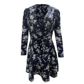 Women's Long Sleeved Bohemian Print Low Cut V Neck Lace Up Dress