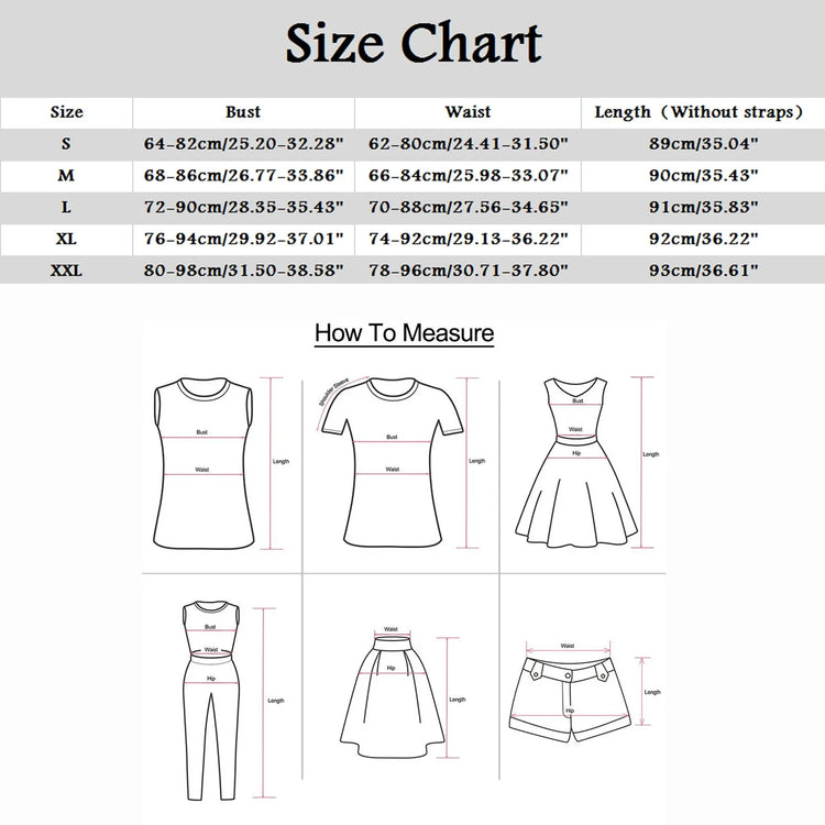 Size:S Bust:64-82cm/25.20-32.28'' Waist:62-80cm/24.41-31.50'' Length(Without straps):89cm/35.04''