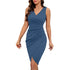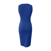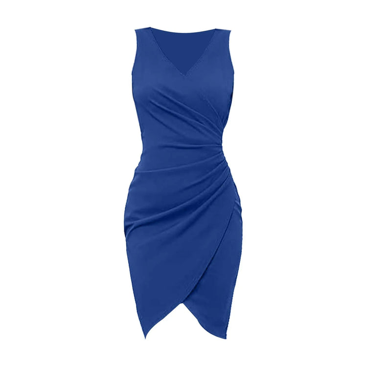 Women Cocktail Dresses Women'S Sexy V Neck Sleeveless Wrap Pleat Solid Color Dress Women Formal Dresses For Work