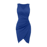 Women's Sexy V Neck Sleeveless Wrap Pleat Solid Color Dress