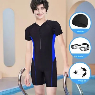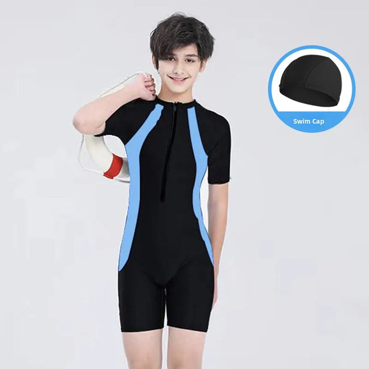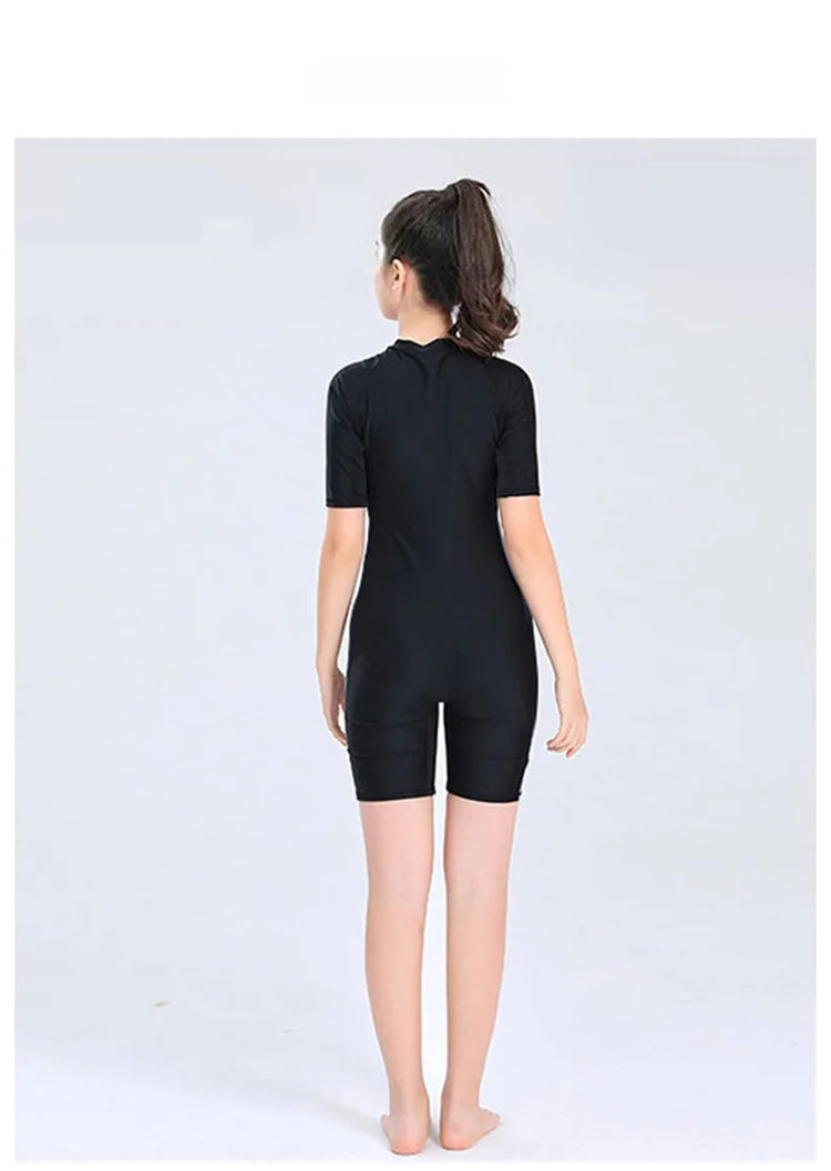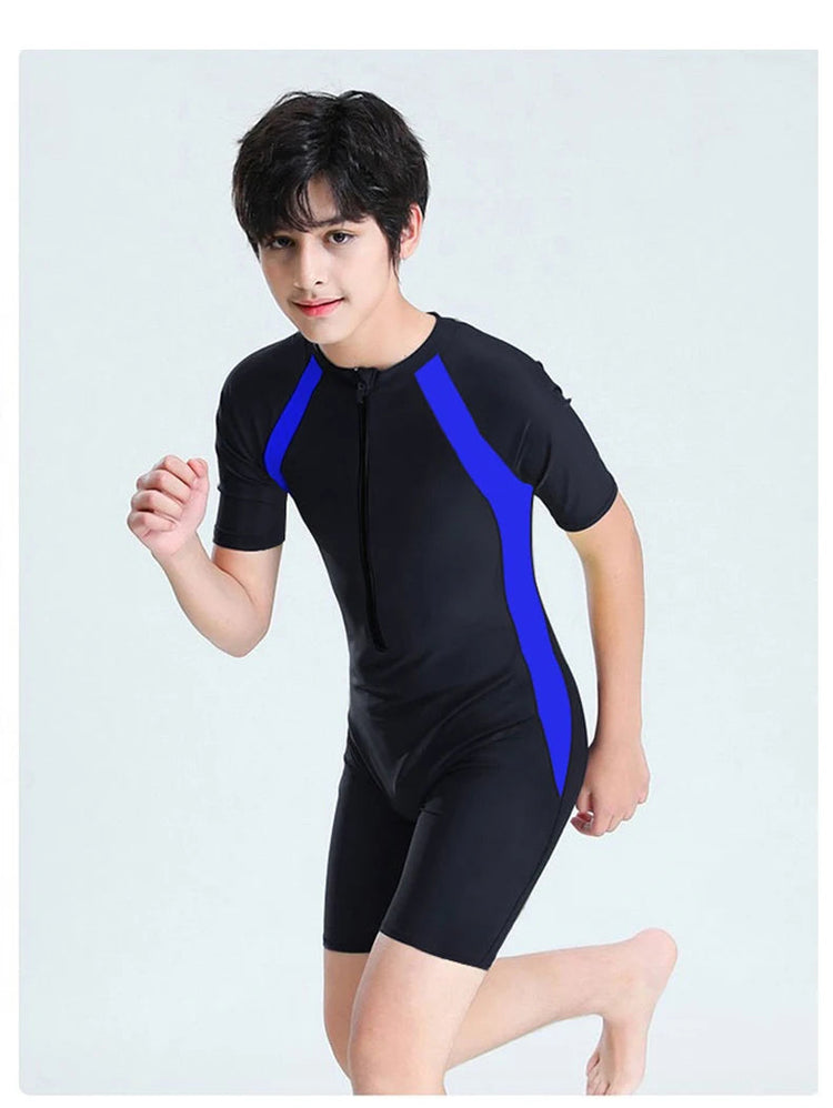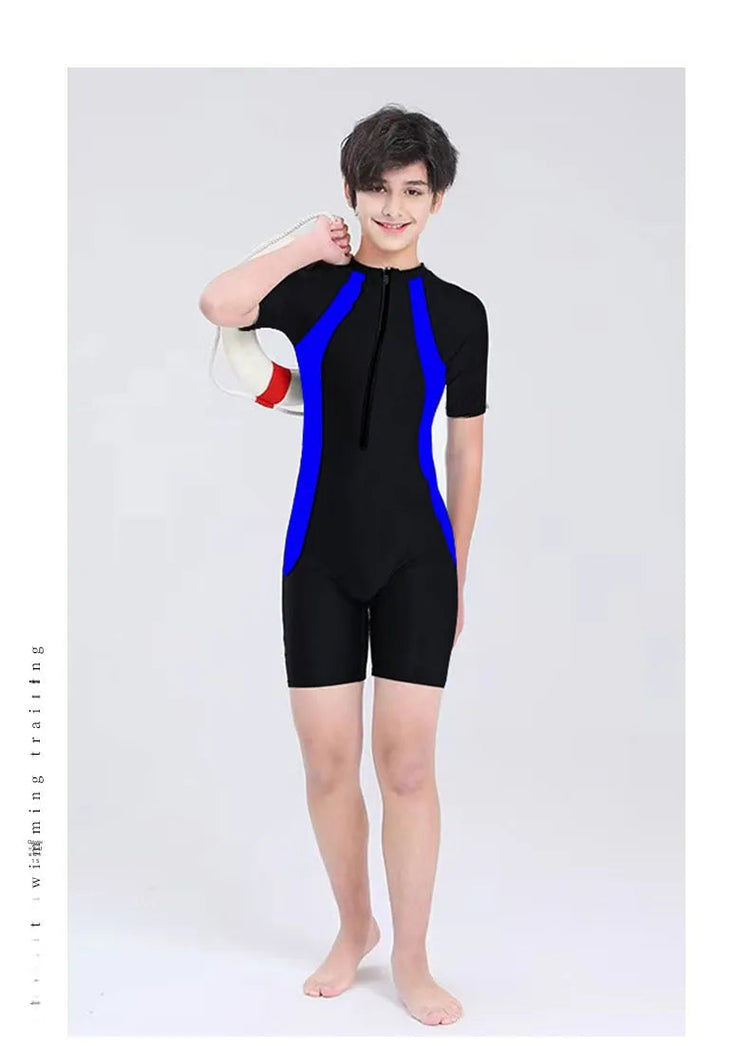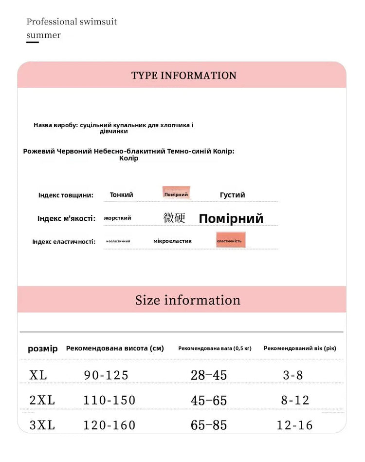 This children's swimsuit is designed for professional swimming training and surfing, ensuring durability and comfort during water activities.