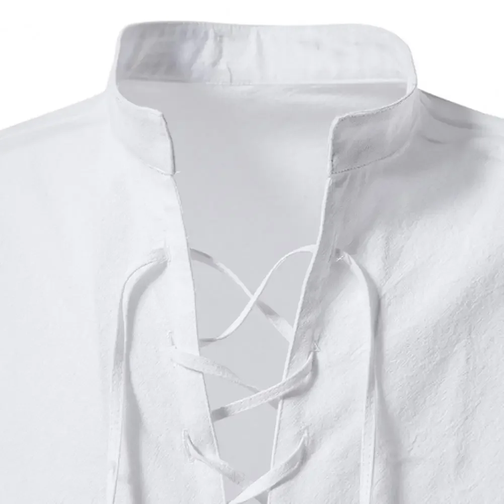 Shirt Cotton Linen Flax Tops Lace Up Long Sleeves Blouse Mens V Neck Medieval Costume Embroidery Tunic Casual Shirt ShedPoundsPortal