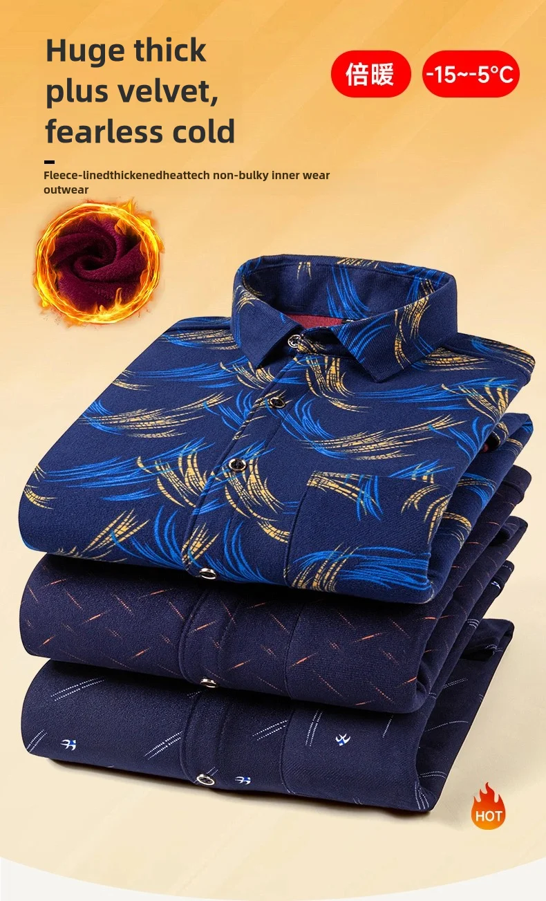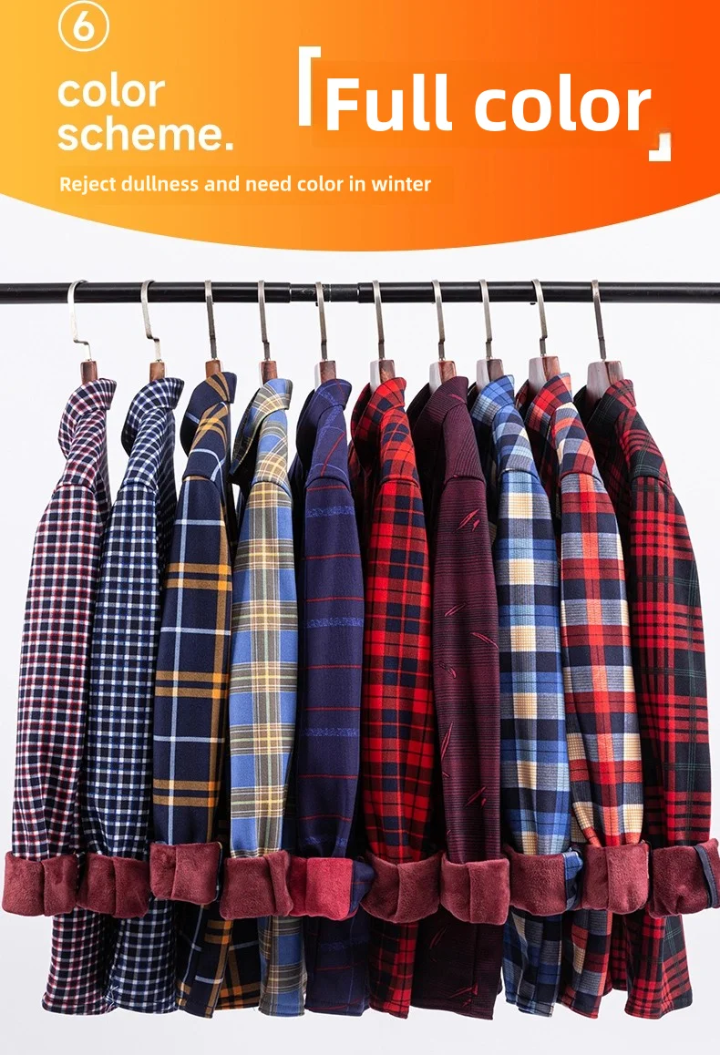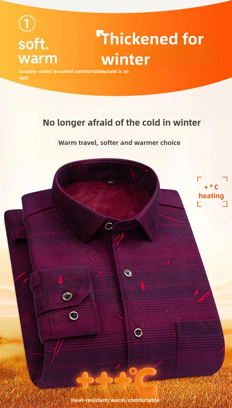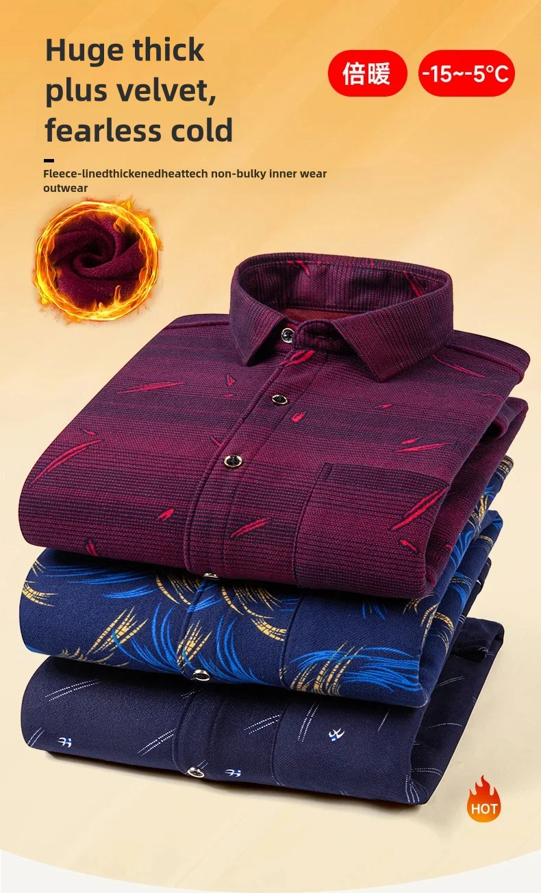 Men's long-sleeved shirt thickened warm 7XL8XL plus size Autumn/Winter casual no-ironing comfortable double-sided fleece top