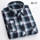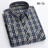 New Cotton Plaid Shirts For Man Long Sleeve Single Pocket Regular Fit Soft Easy Care Classic Dress Casual Shirts Man Clothing