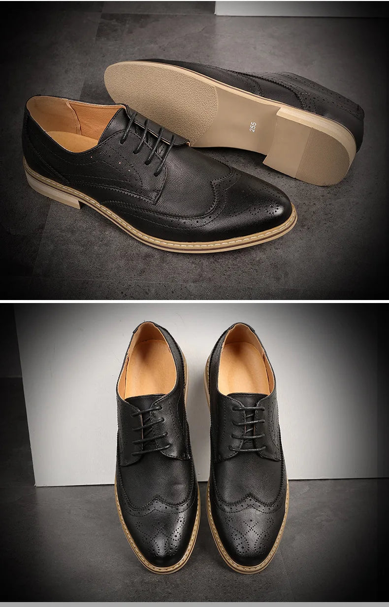 Mens Comfortable Dress Shoes New Leather Brogue Mens Flats Casual British Style Men Oxfords Fashion Formal Shoes Wedding Shoes