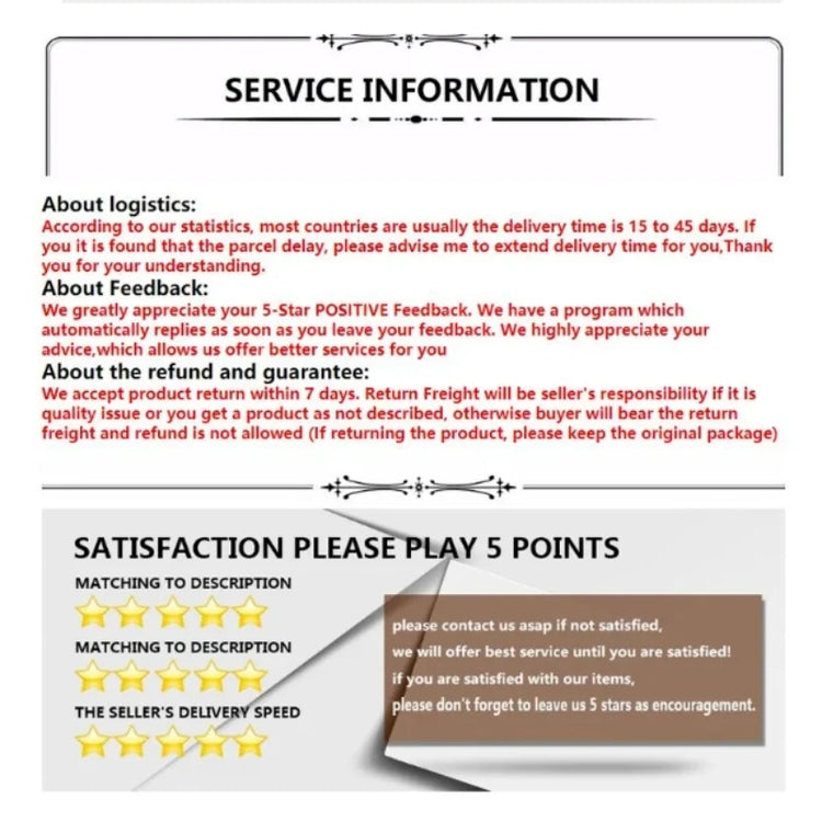 We process orders within 1–3 business days. Estimated delivery time is 7–15 business days depending on your region within the US.
