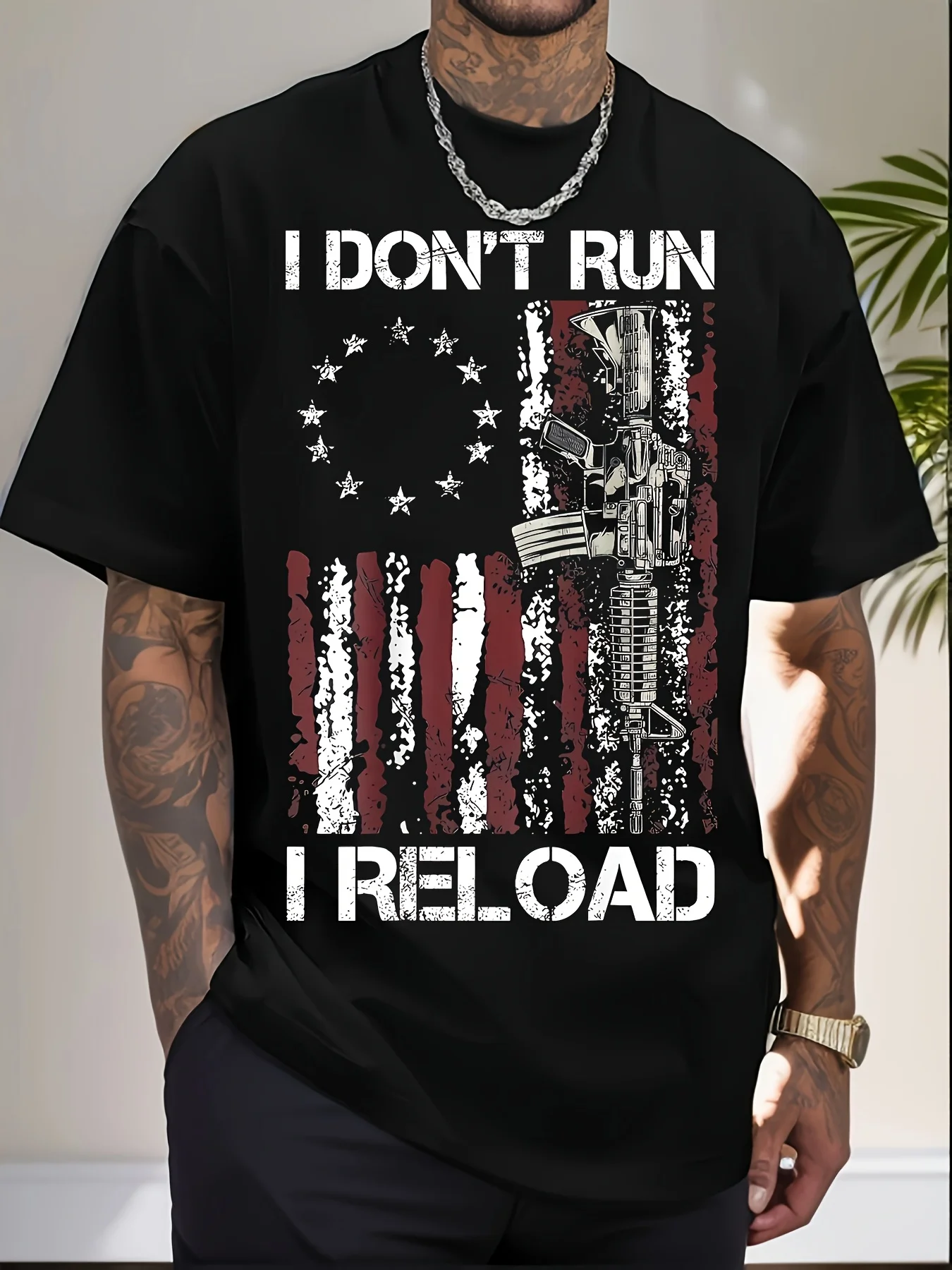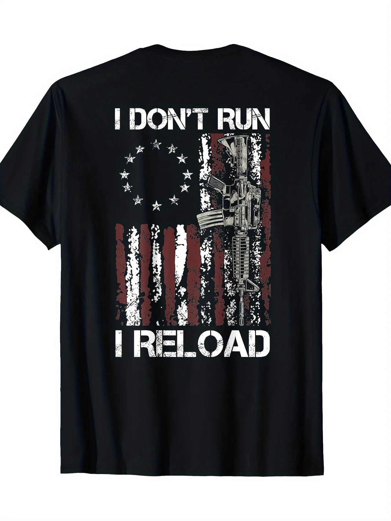 I Don t Run I Reload Gun American Flag Patriots T-Shirt Funny Graphic Tee for Men Women 100 Cotton Breathable Fabric Shirt ShedPoundsPortal