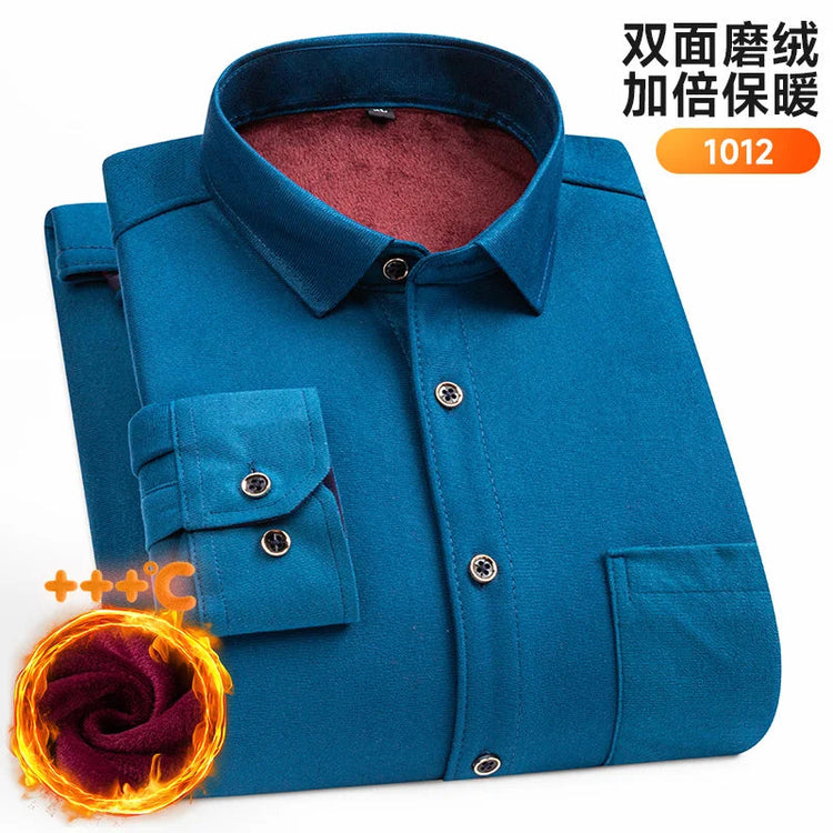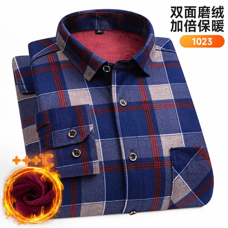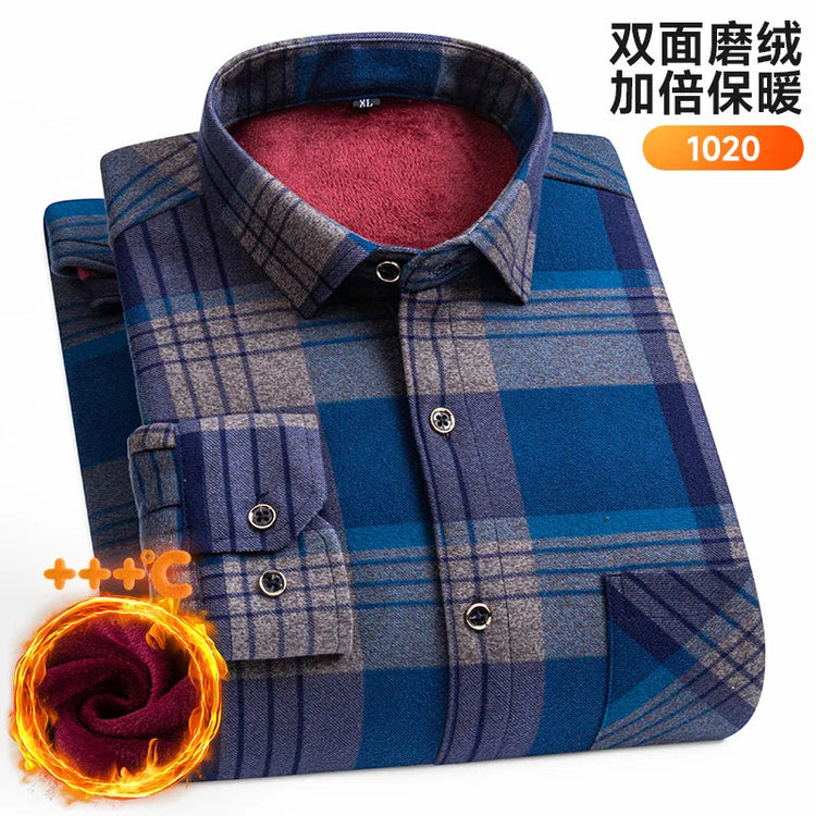 Men's long-sleeved shirt thickened warm 7XL8XL plus size Autumn/Winter casual no-ironing comfortable double-sided fleece top