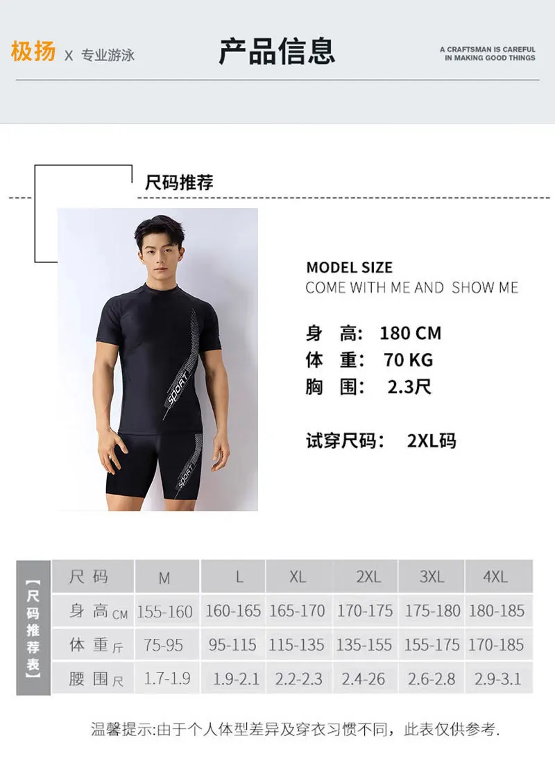 Men Swimsuit O-Neck Short Sleeve Mid-rise Swimming Suit Printing Slim Fit T-shirt Swimming Trucks Set Beachwear