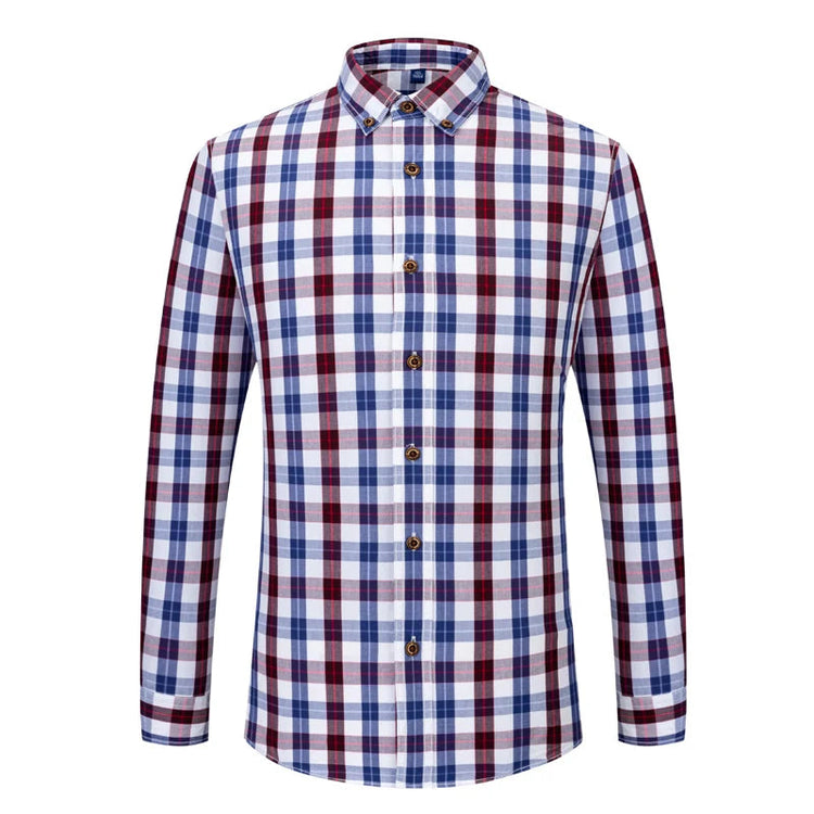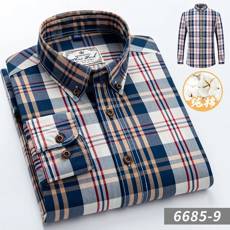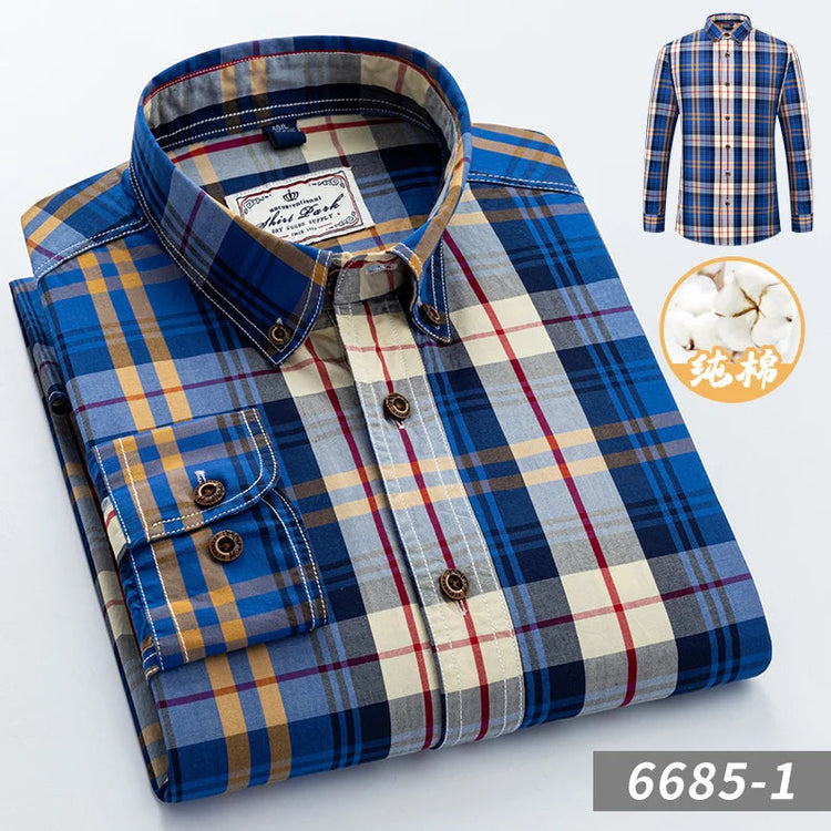 2025 New Men's Fashion Plaid 100% Cotton Spring Autumn Pocket Long Sleeve Slim-fit Button-down Male Shirt