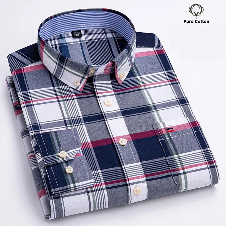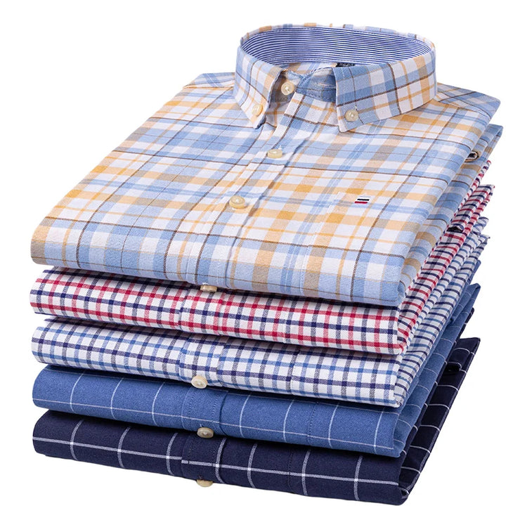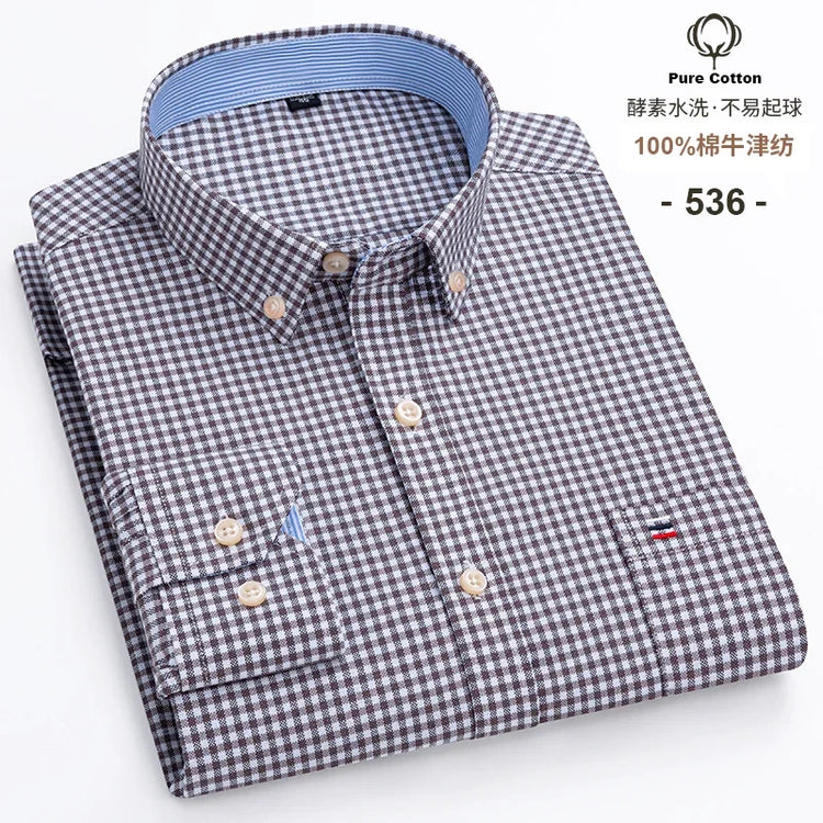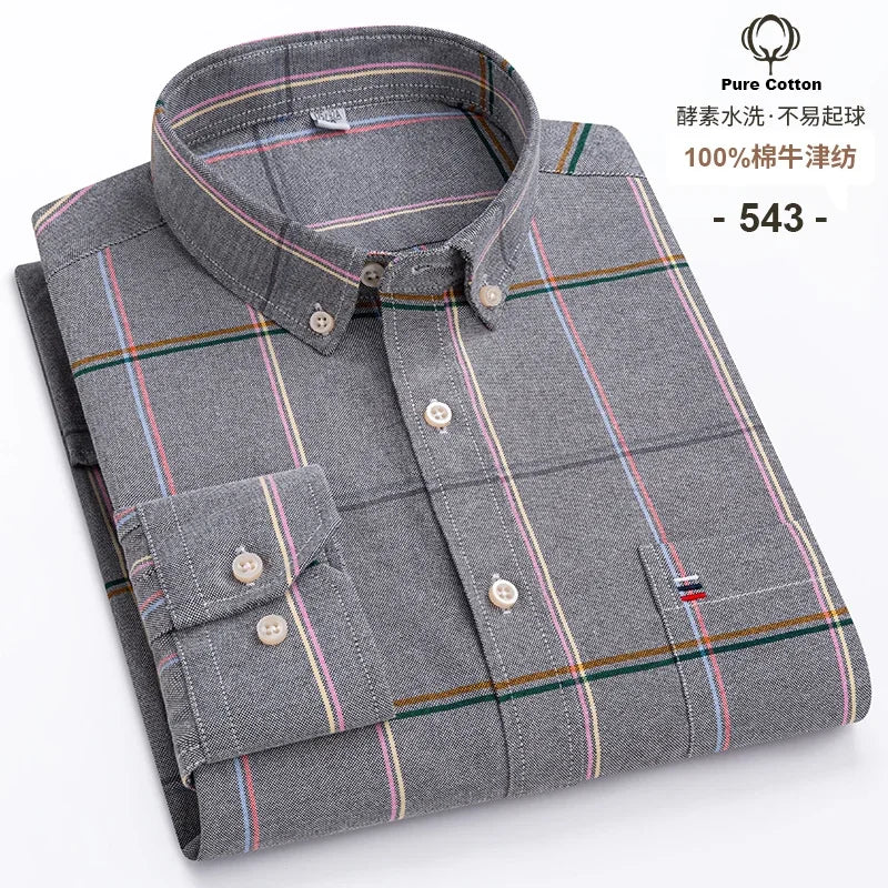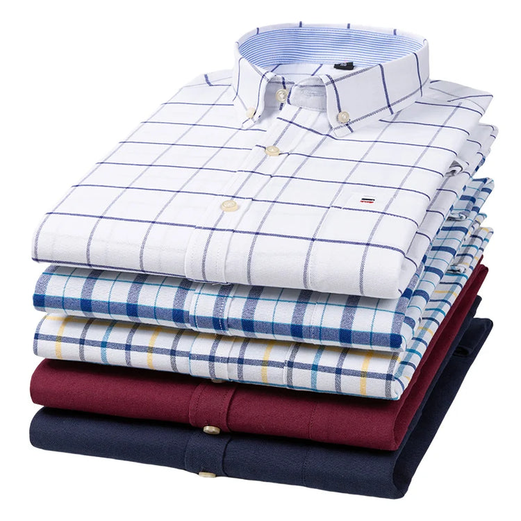Casual Pure Cotton Oxford Mens Shirts Long Sleeve Plain Soild Regular Fit Fashion Button Man Dress Shirts
