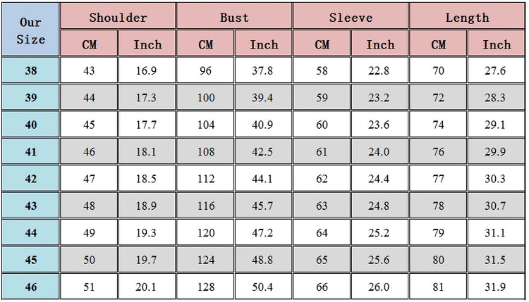 Tips:1,Our size is Asian size , all measures Exist 1-2cm error !Leave me your Shoulder,Bust  ,