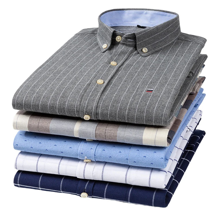 Casual Pure Cotton Oxford Mens Shirts Long Sleeve Plain Soild Regular Fit Fashion Button Man Dress Shirts