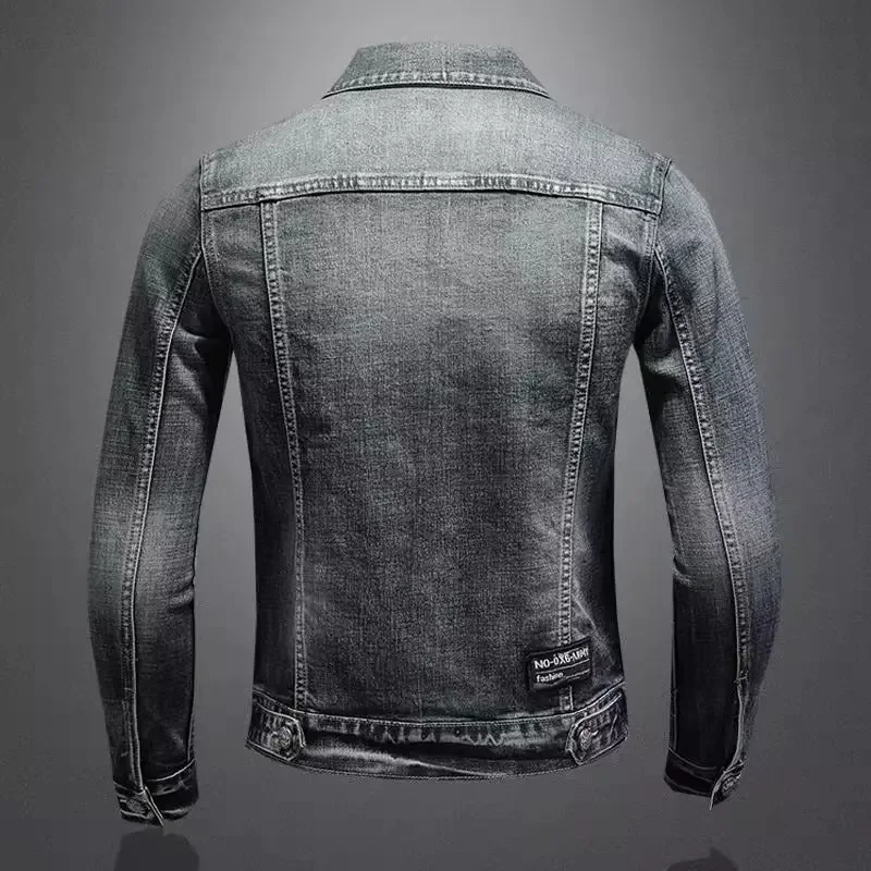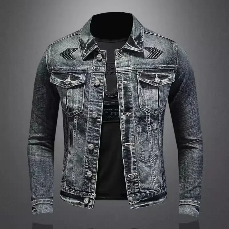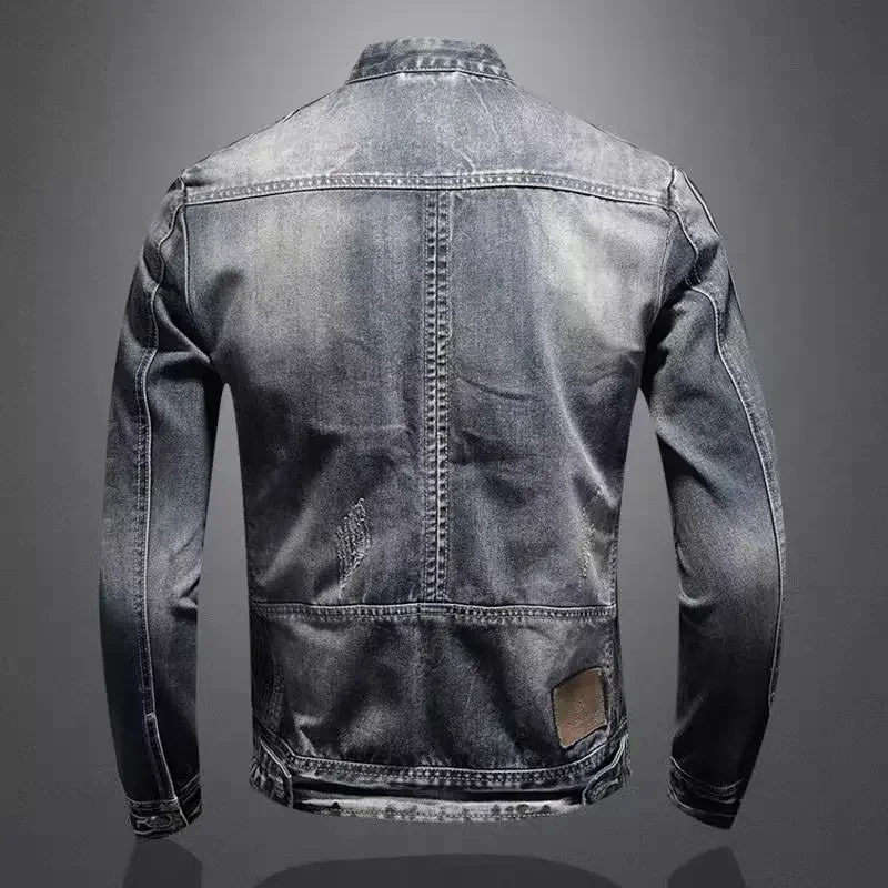 Trendy Stand Collar Zip-Uplapel Motorcycle Denim Jacket Unique Vintage Sports Top For Men Casual Trendy Brand Jacket