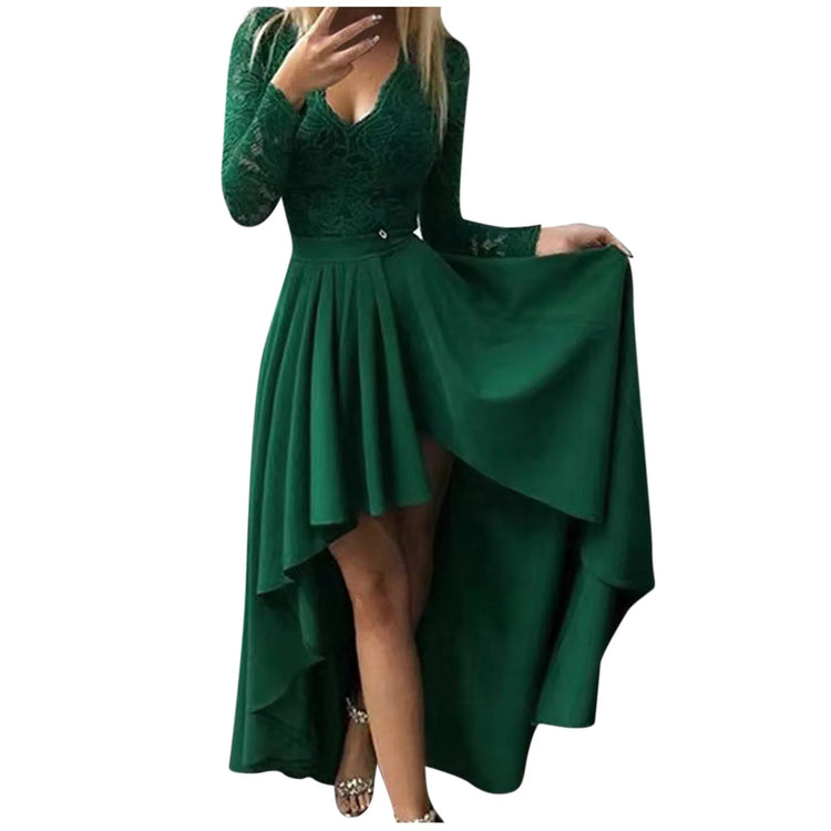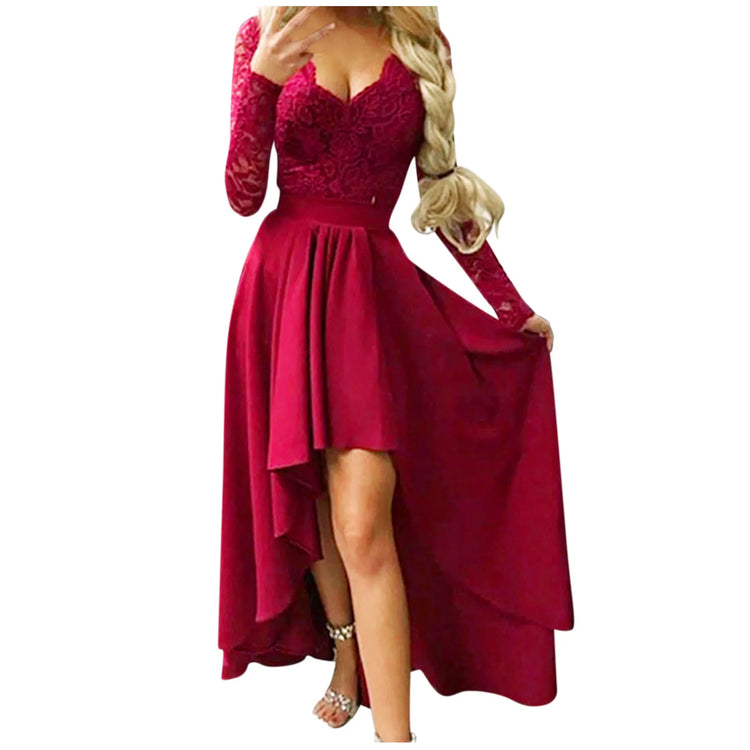 【Unique Design】This sexy dresses featuring Lace bodice,long sleeves,a sweetheart lining and a high-low taffeta skirt.