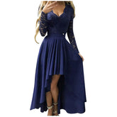 Elegant Satin V-Neck Maxi Dress with Lace Dovetail