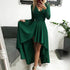 Elegant Satin V-Neck Maxi Dress with Lace Dovetail