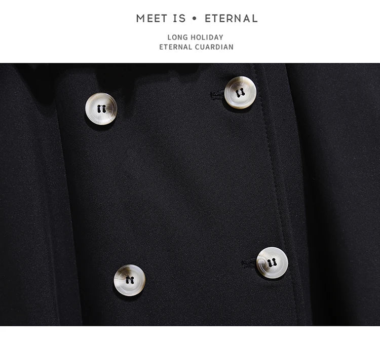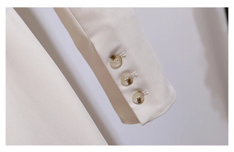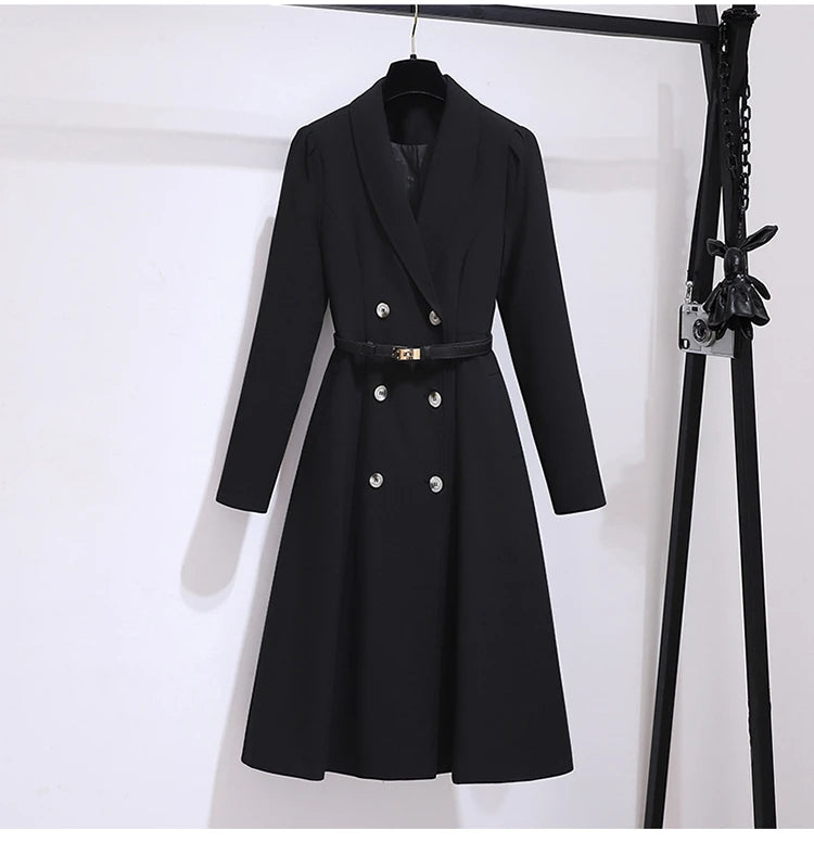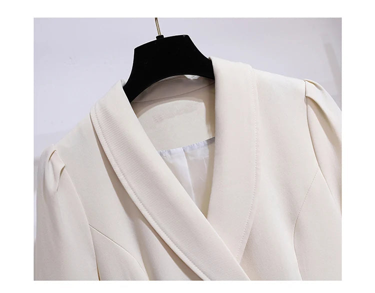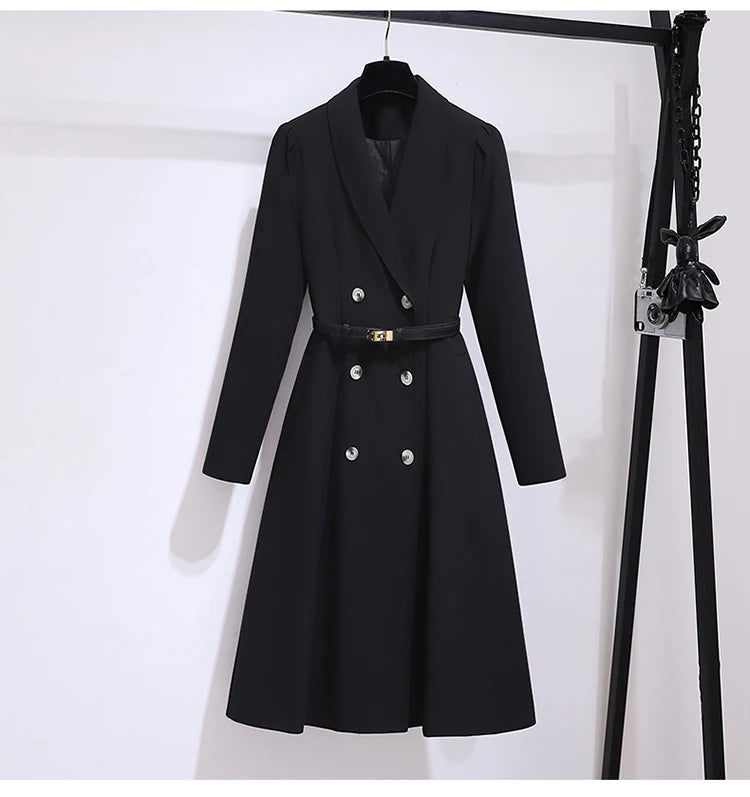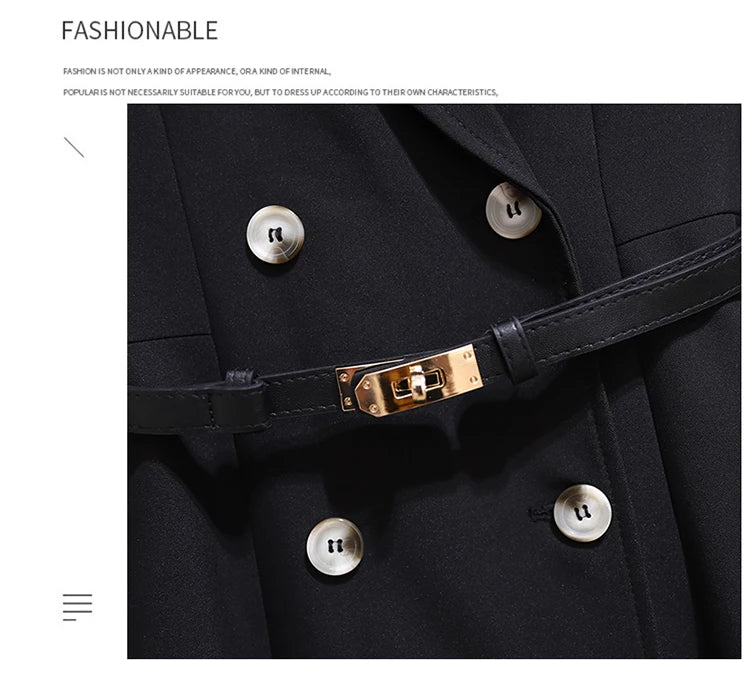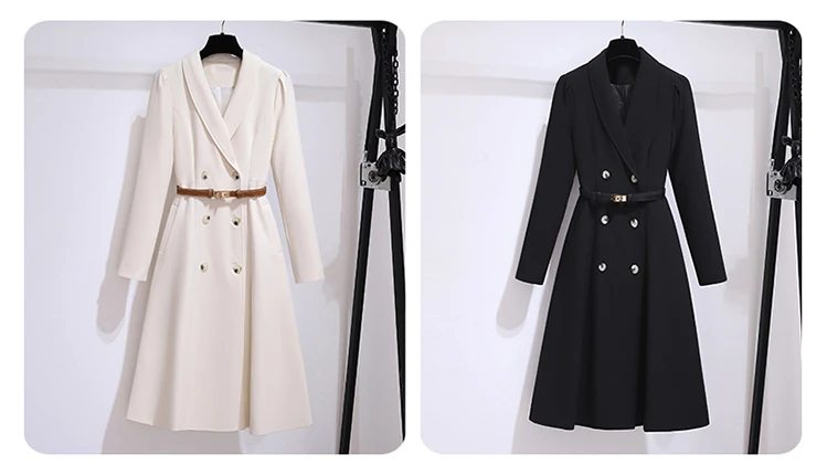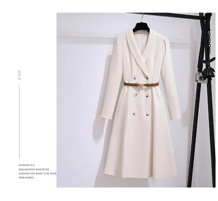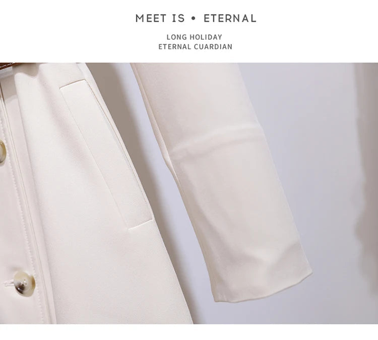Women's Dress Double Breasted Elegant Dresses for Women 2025 Autumn Off white Dress Belt Knee-Length Solid Fashion Woman Clothes